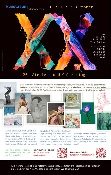 Die 20. kunst.raum Atelier- und Galerietage RE 2025 finden am 11. und 12.10. mit einer Auftaktveranstaltung am 10.10. statt